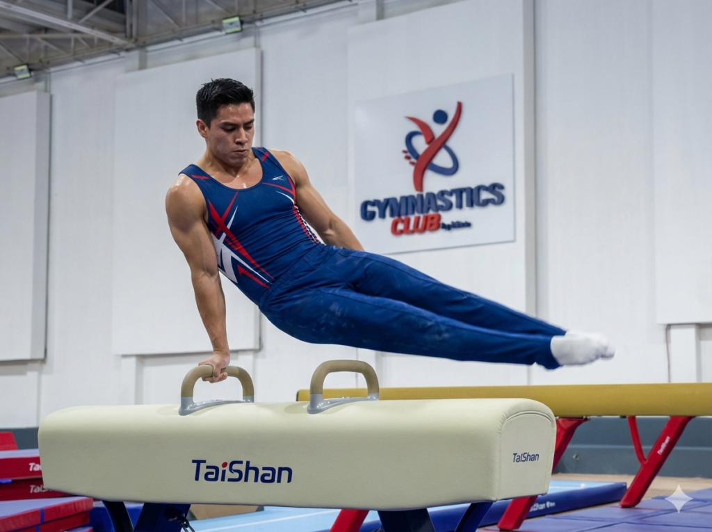 Entrena con aparatos especializados como barras, viga, anillos, foso de espuma y suelo con podium.